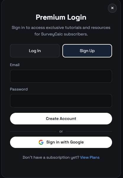 - Go to www.surveycalc.io, click Login in the signup page, then click Sign Up.